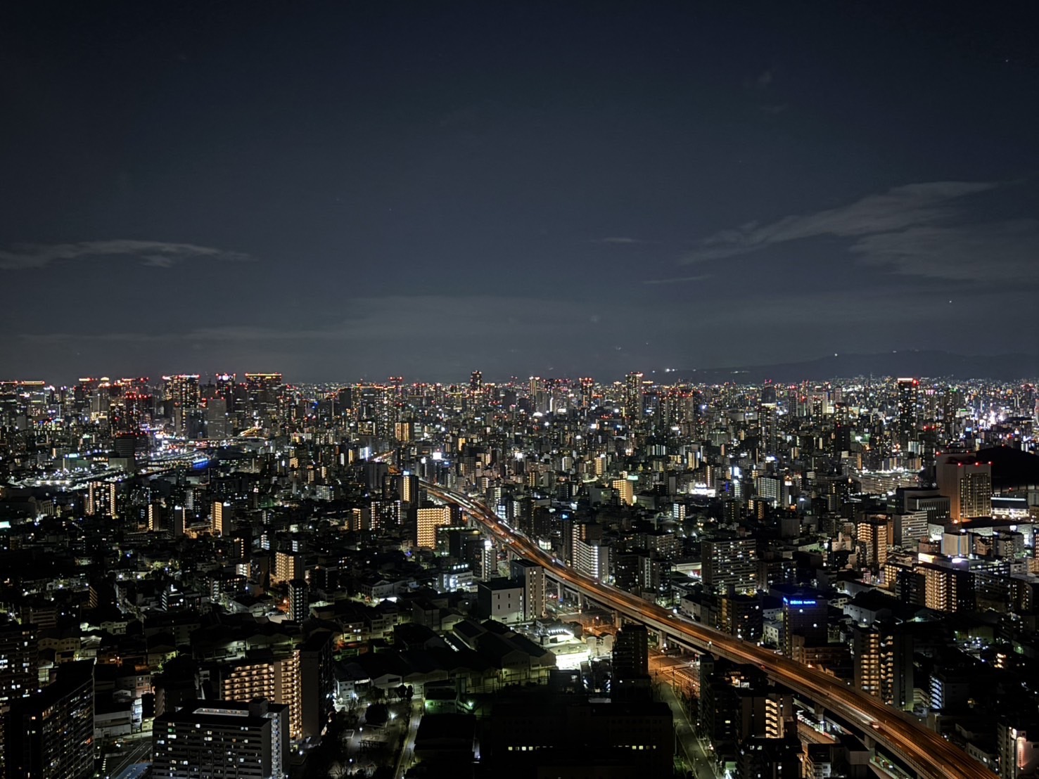 大阪の夜景を眺めながら、